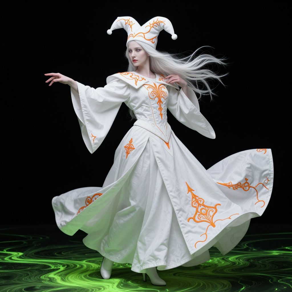 A hyper-realistic anime woman in a flowing medieval robe adorned with intricate multicolored floral patterns, glowing vividly with hues of sapphire blue, emerald green, ruby red, golden yellow, and amethyst purple, Each flower features thick, luminous outlines matching its color, creating a mesmerizing contrast against the robe’s dark crimson and black base, The high collar and sweeping train remain intact, now radiating with a magical, dynamic vibrancy, Her partially pulled-back hood frames her determined face, illuminated softly by the glow of the multicolored floral designs, She strides through a dramatic Scottish Highlands backdrop, rendered in photographic realism with rolling mist and jagged mountain peaks, The cool greens and grays of the misty terrain enhance the warmth and brilliance of the glowing patterns, The lighting is cinematic, with overcast skies casting a diffused, ethereal glow, while the floral patterns emit a faint, magical light, HD quality, R-ESRGAN 4x+, cinematic depth of field, dynamic contrast