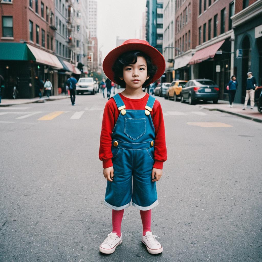 Tilly Big City Greens Costume, girl in green dress and hat standing on sidewalk