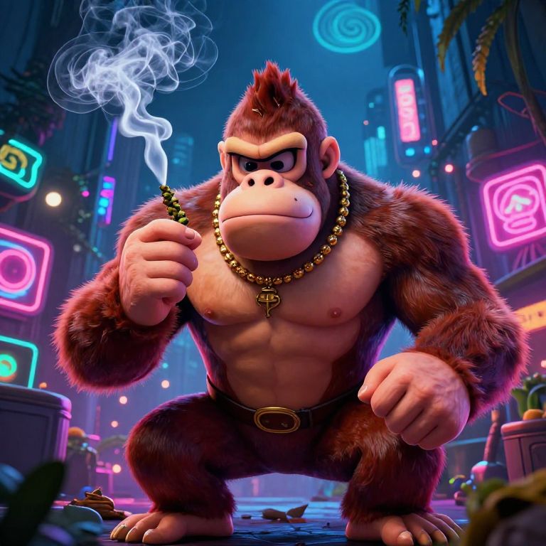 Futuristic Monkey Rapper Night Scene