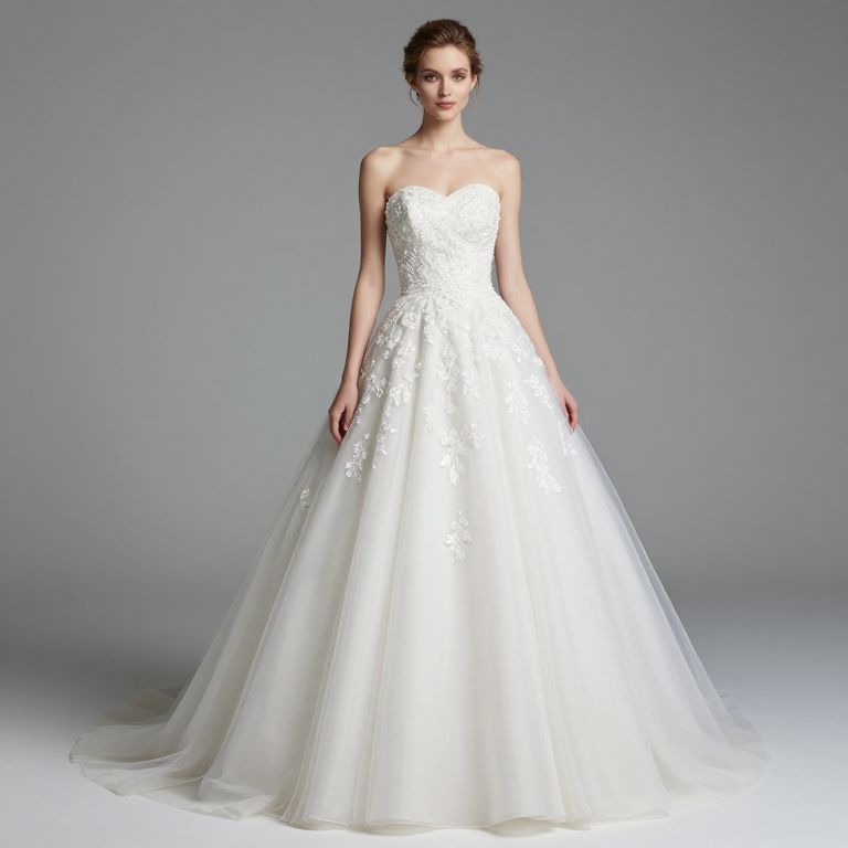 Strapless Scoop Neck Embroidered Wedding Dress