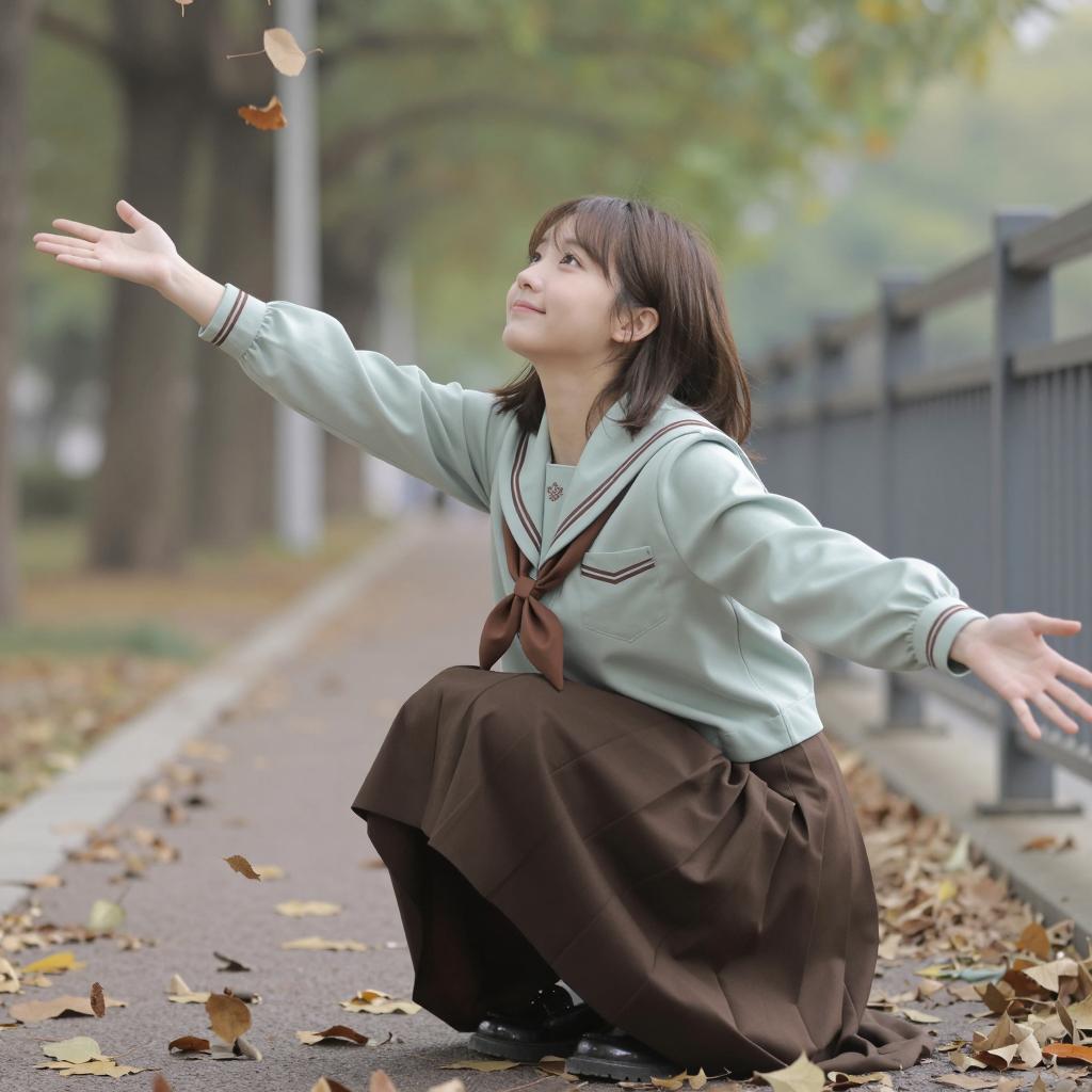 Dynamic Pose of Asian Schoolgirl in Uniform