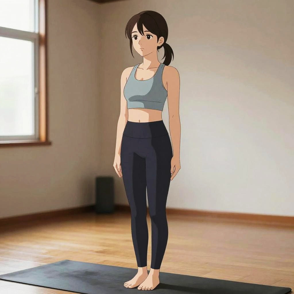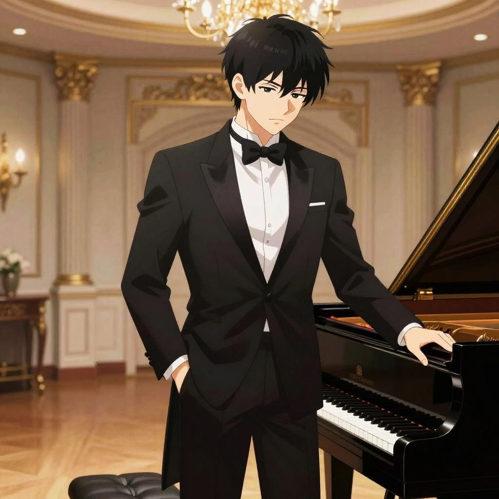 A graceful ballerina, wearing a delicate tutu, standing on a grand stage adorned with chandeliers, expressing poised elegance, illustrated in the dramatic and elegant anime style of Suzue Miuchi.