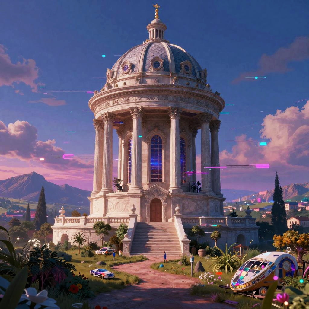 AI remake image showcasing a futuristic digital art style, blending glitch effects with vibrant neon colors, depicting a classic landscape transformed by artificial intelligence algorithms, intricate details, high resolution, surreal ambiance.
