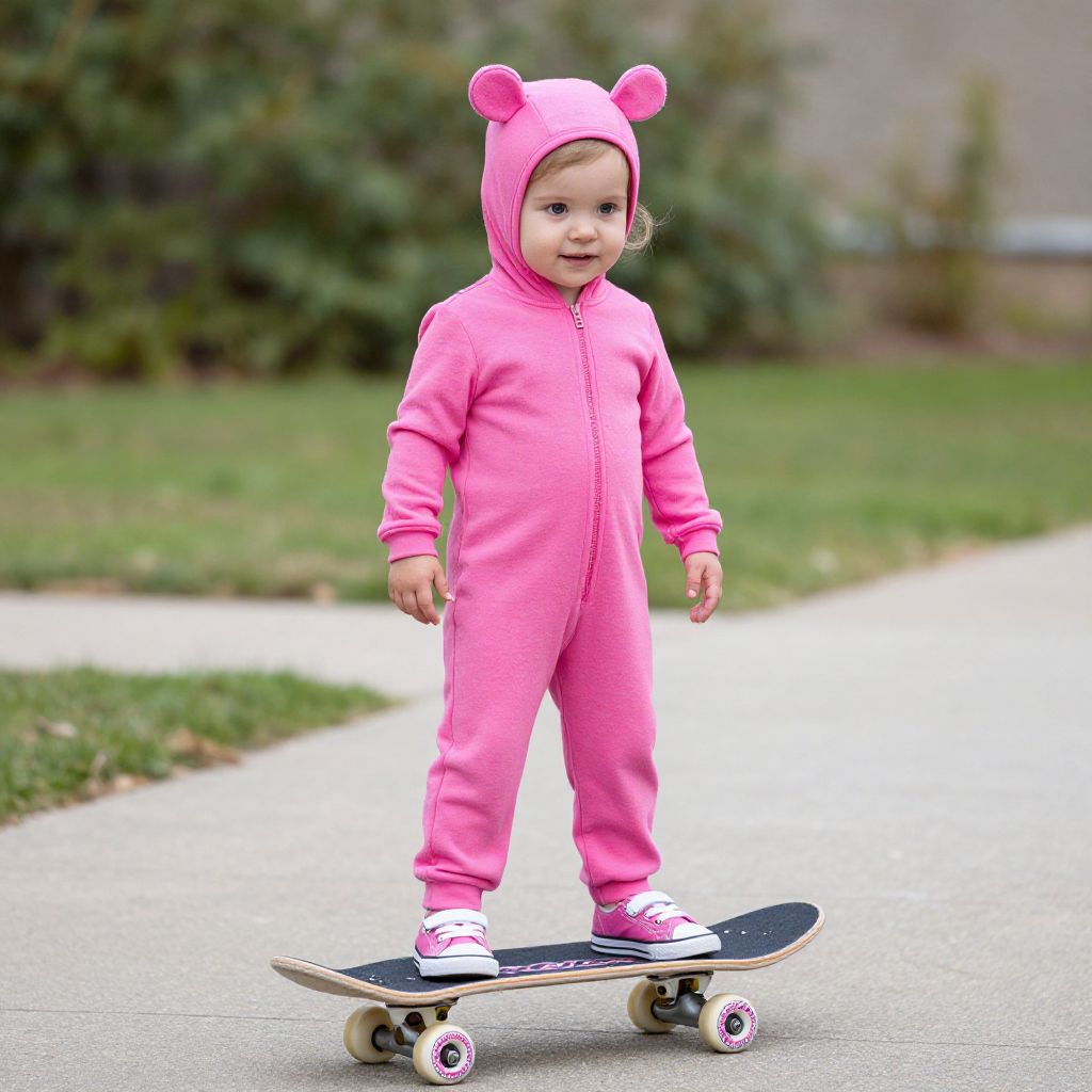Simmons Toddler Costume, little girl that is standing on a skateboard