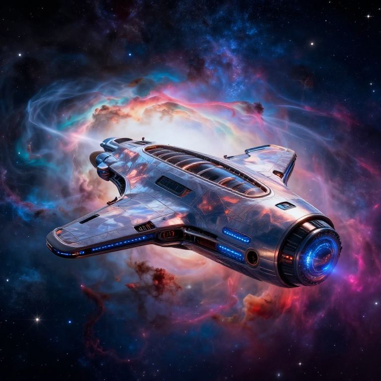 Futuristic Spacecraft in Vibrant Nebula