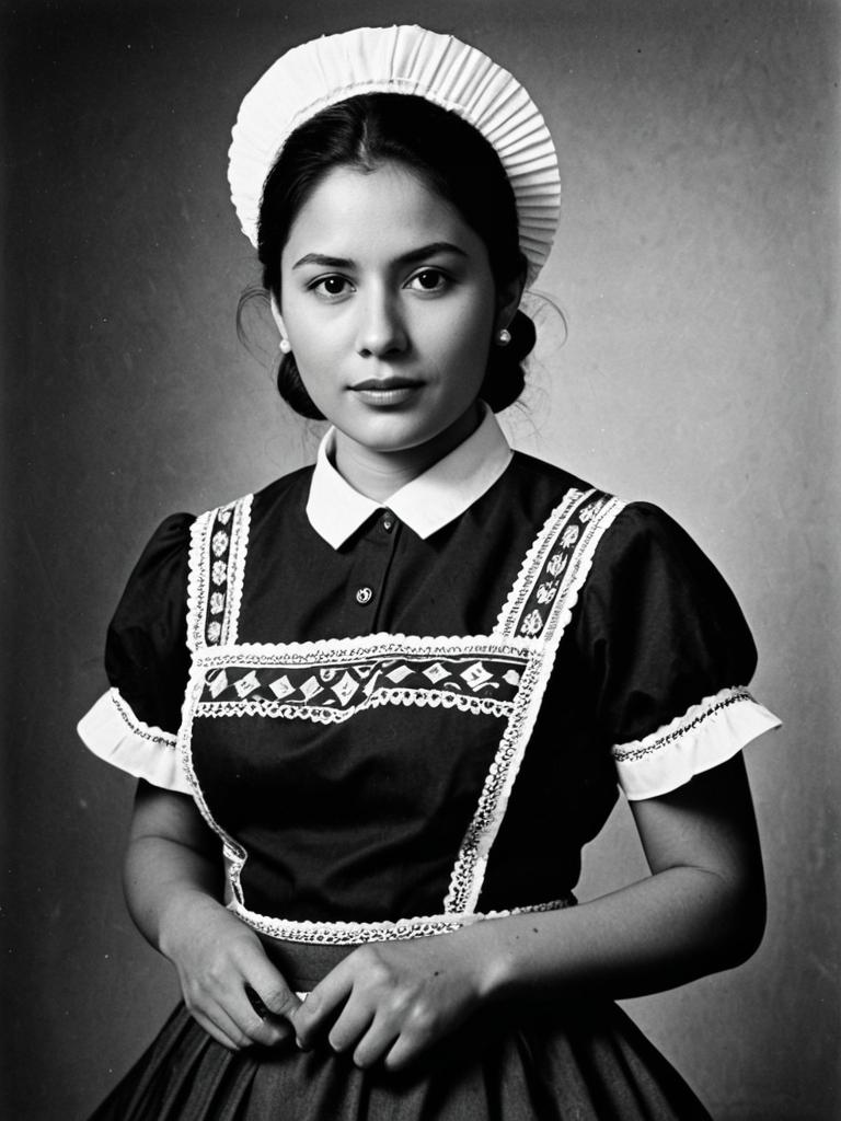 Woman in Mexican Waitress Costume, photorealistic detailed studio portrait
