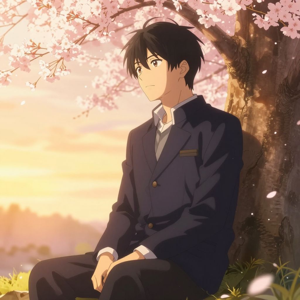 Anime Student Under Cherry Blossom Tree