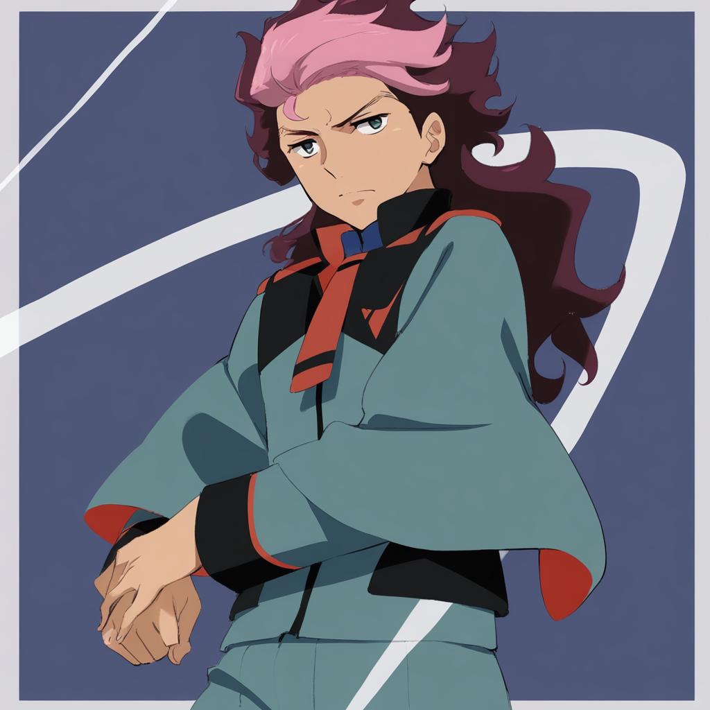 Guel jeturk, gundam, 1boy, blue eyes, mole under eye, pink hair, two-tone hair, brown hair, long hair, asticassia school uniform, by artist tabata hisayuki, leet