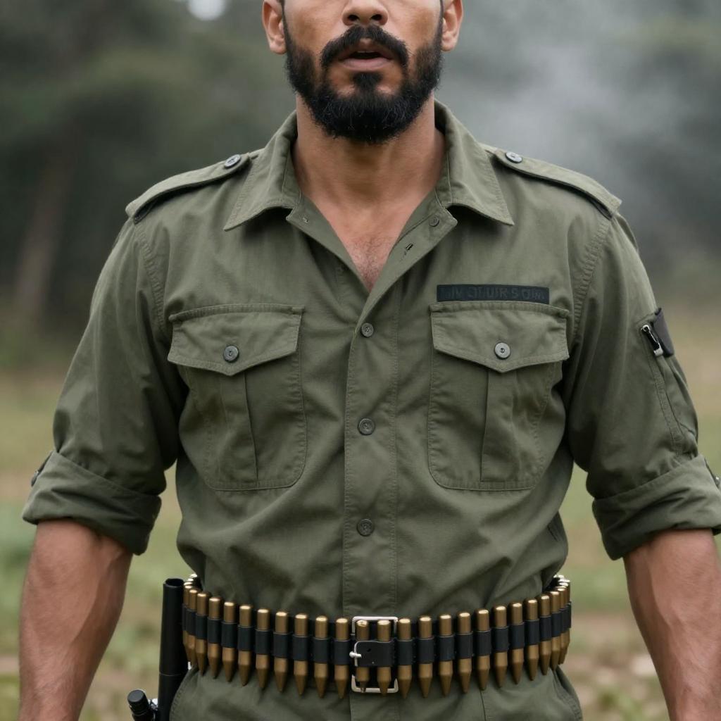 Serious Bearded Man in Military Uniform