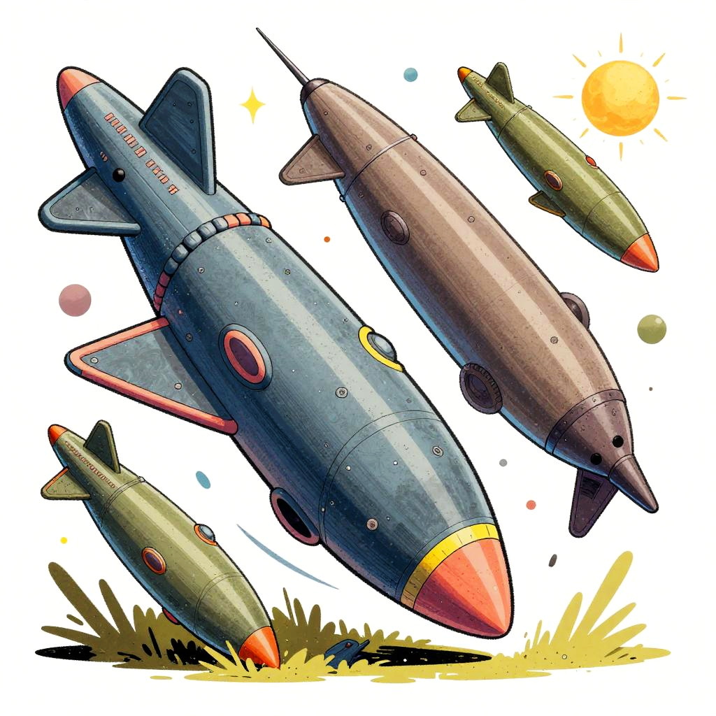 Torpedo tits illustration, surreal fantasy style with exaggerated bold shapes resembling torpedoes, vibrant color palette, energetic composition, blending mechanical and organic elements