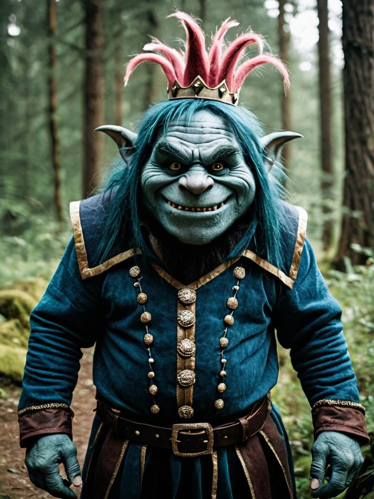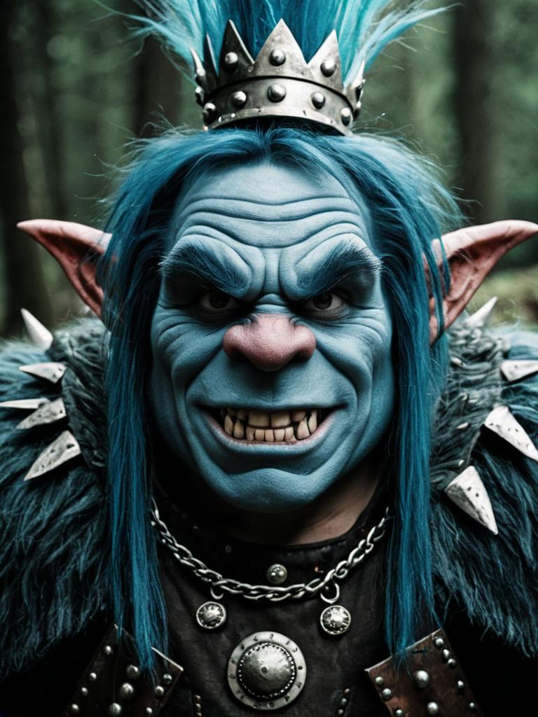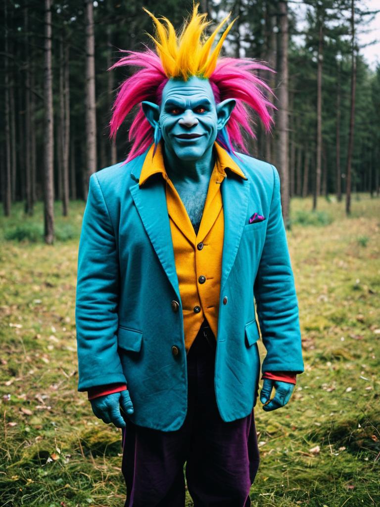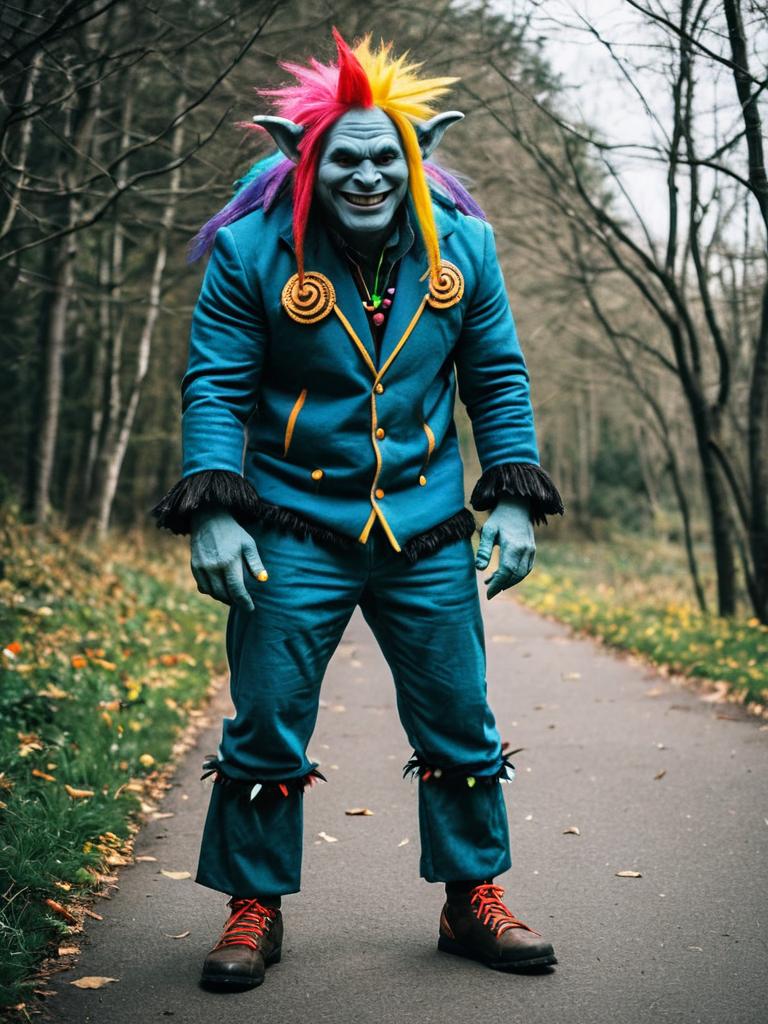 Man in Troll Costume, full-body cosplay photo with colorful hair