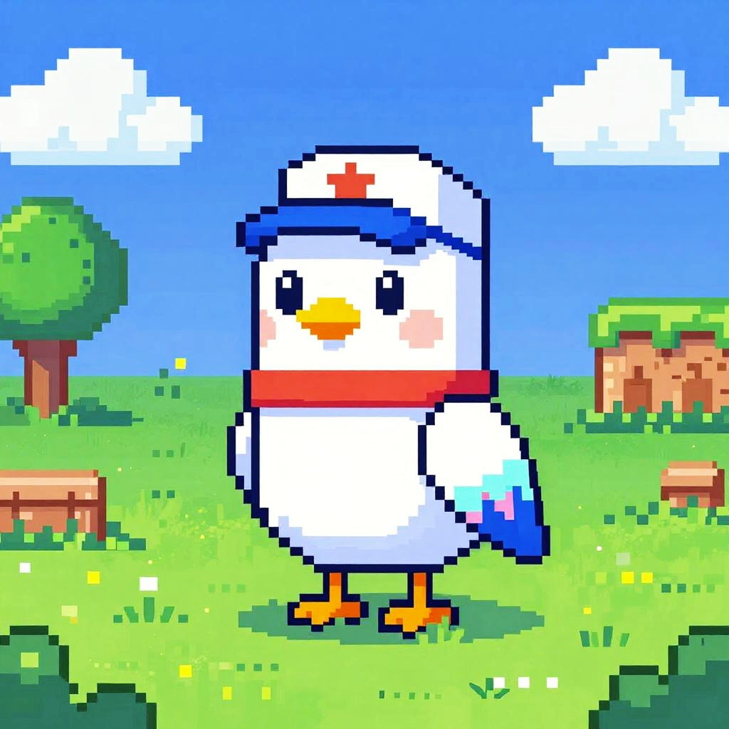 An extreme long shot showcasing a vibrant 8-bit landscape. The central figure is a birdlike android with holographic feathers, embodying an information courier. This pixelated masterpiece captures the essence of retro video games, influenced by the styles of Ryohei Hase and Tetsuya Nomura.