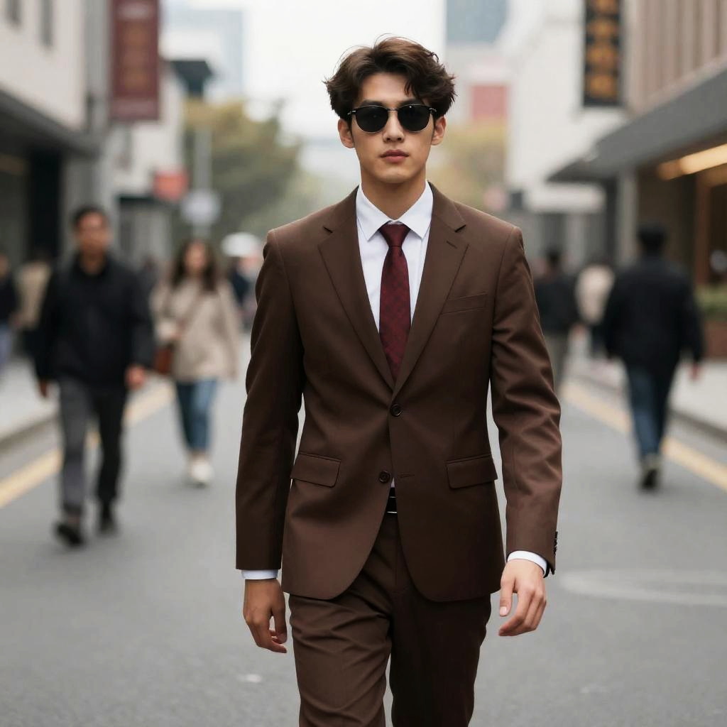 Business Man Halloween, man in a brown suit and tie standing in a street