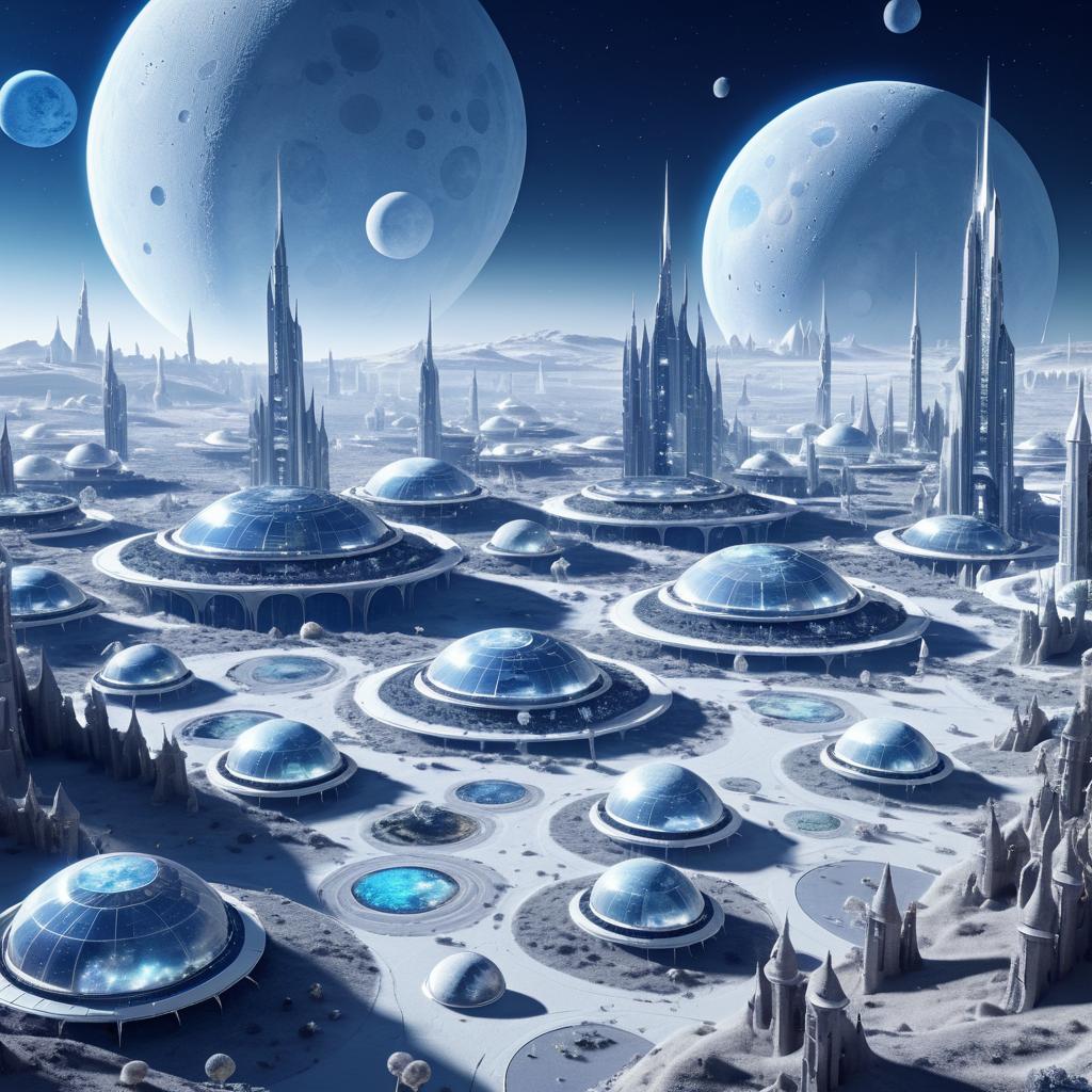 Futuristic Lunar Colony with Domes and Craters