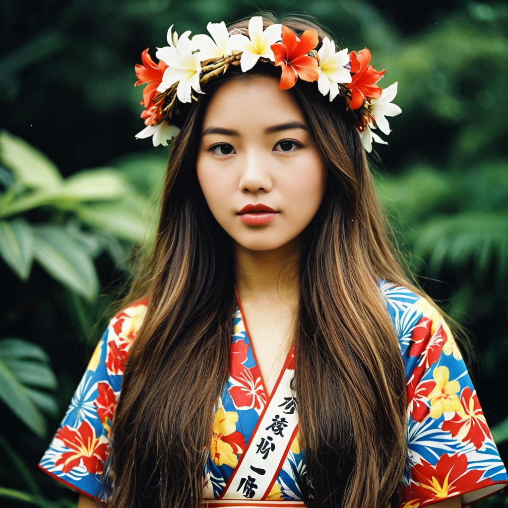 Realistic Akaza Costume Portrait with Flowers
