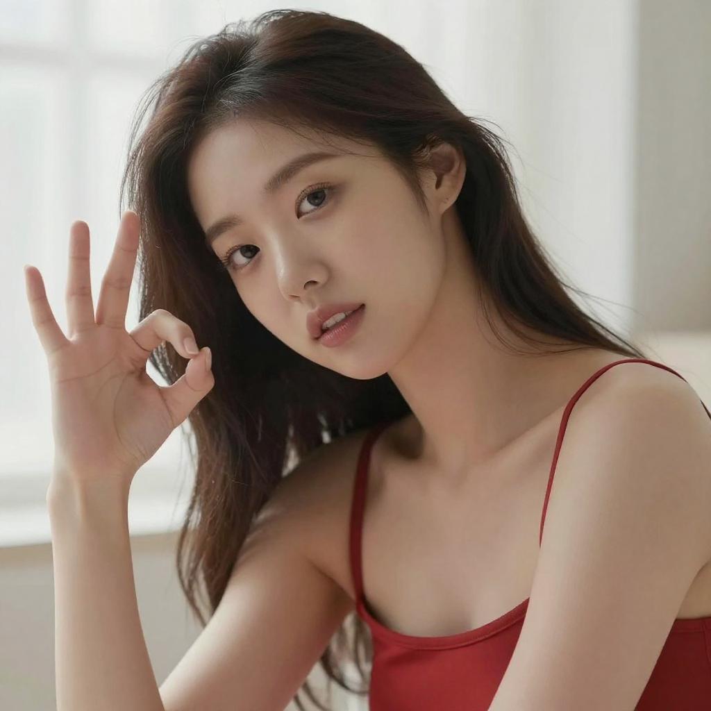 (PureErosFace_V1:1.0), good hand, 4k, high-res, masterpiece, best quality, head:1.3, ((Hasselblad photography)), (Korean K-pop idol), finely detailed skin, sharp focus, (cinematic lighting), collarbone, morning, soft lighting, dynamic angle, [:(detailed face:1.2):0.2], (PureErosFace_V1), armpit crease, thigh gap, red clothes, slender, medium breasts, cleavage