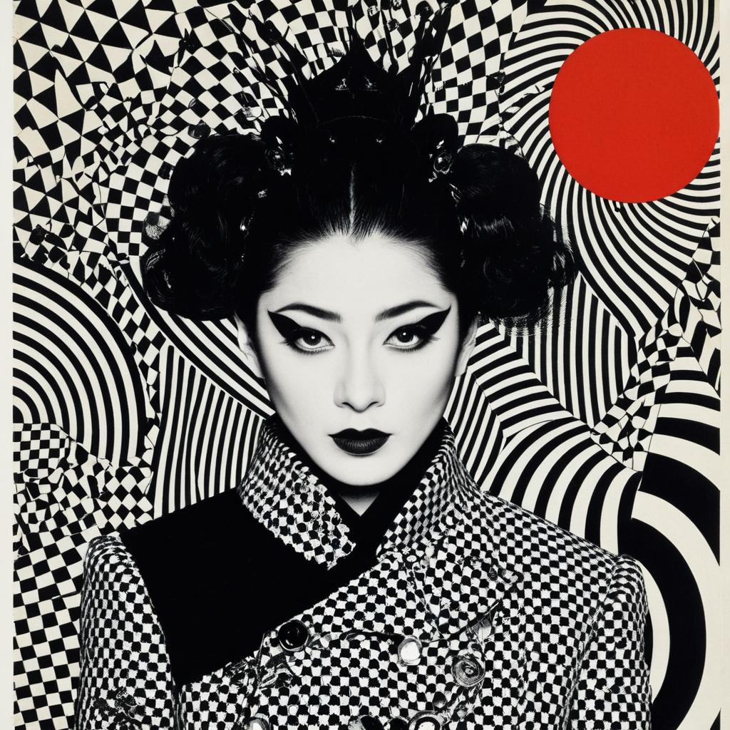 Poster blending the collage art of René Magritte with visual kei aesthetics, surreal imagery and bold juxtapositions, flamboyant Japanese fashion, thought-provoking, vibrant and dynamic, contemporary art style.