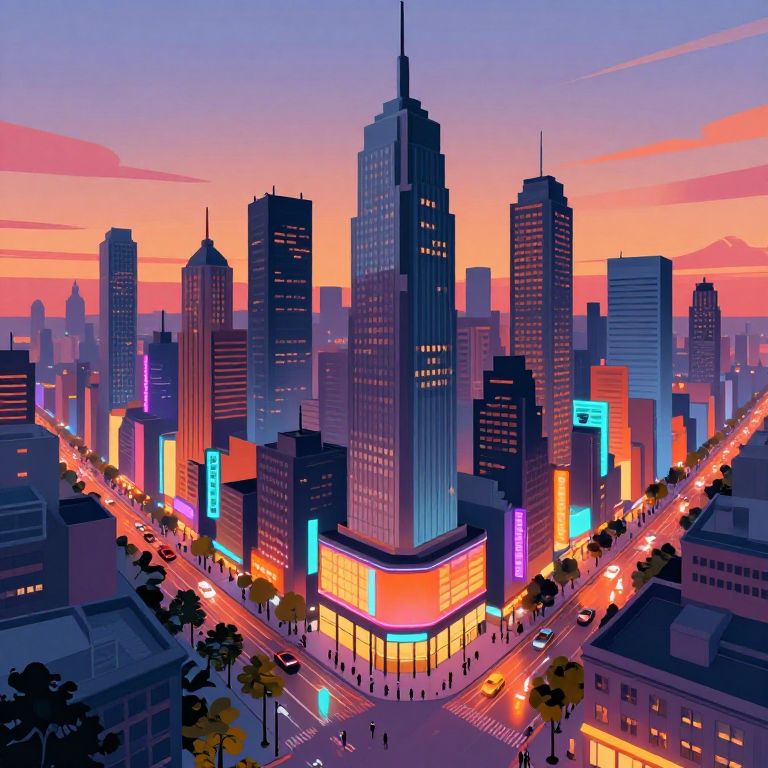 Vibrant Urban Skyline at Sunset