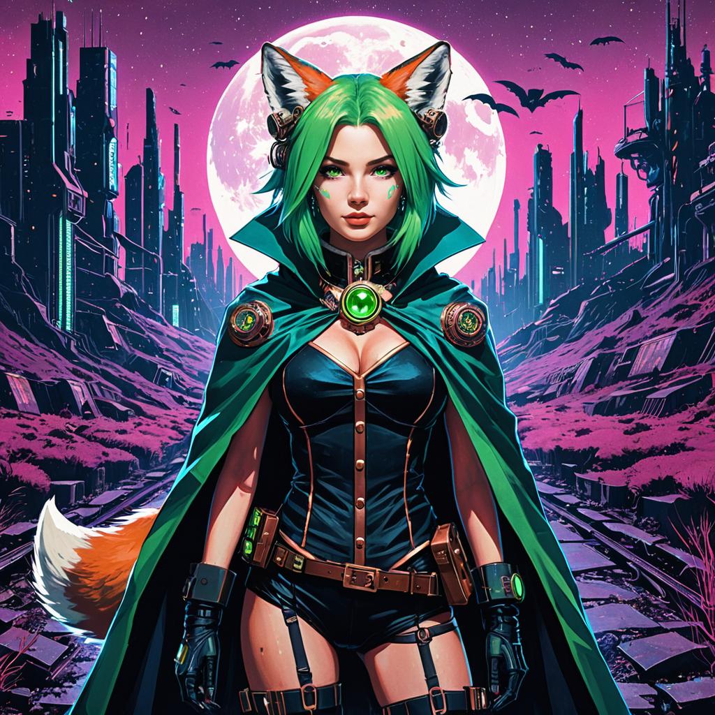 Futuristic Anthropomorphic Lynx Woman in Sci-Fi Landscape