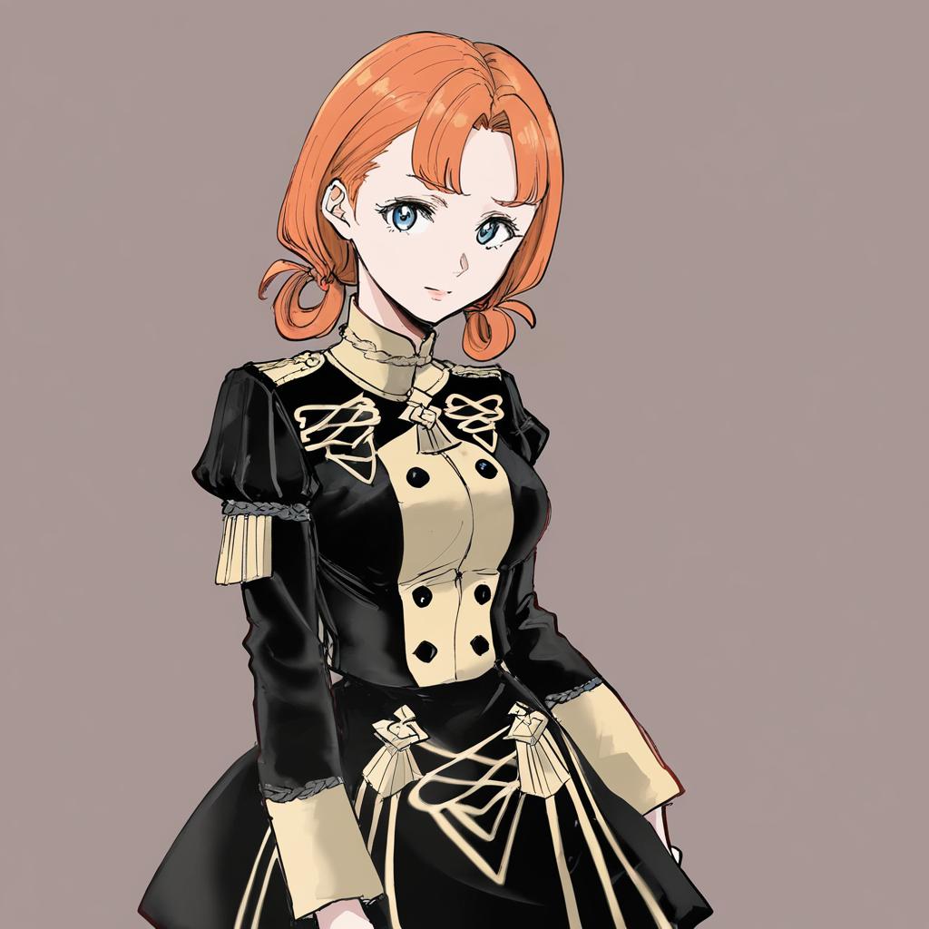 Annette fantine dominic, fire emblem, 1girl, blue eyes, orange hair, long hair, twintails, medium breasts, garreg mach monastery uniform, long sleeves, by artist osakana (denpa yun'yun), leet