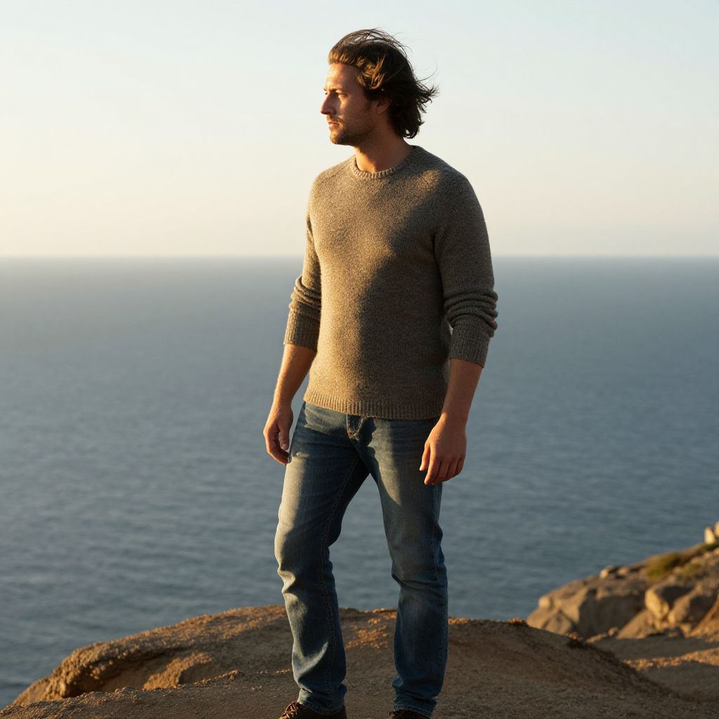 Handsome Man Walking by Seaside Path