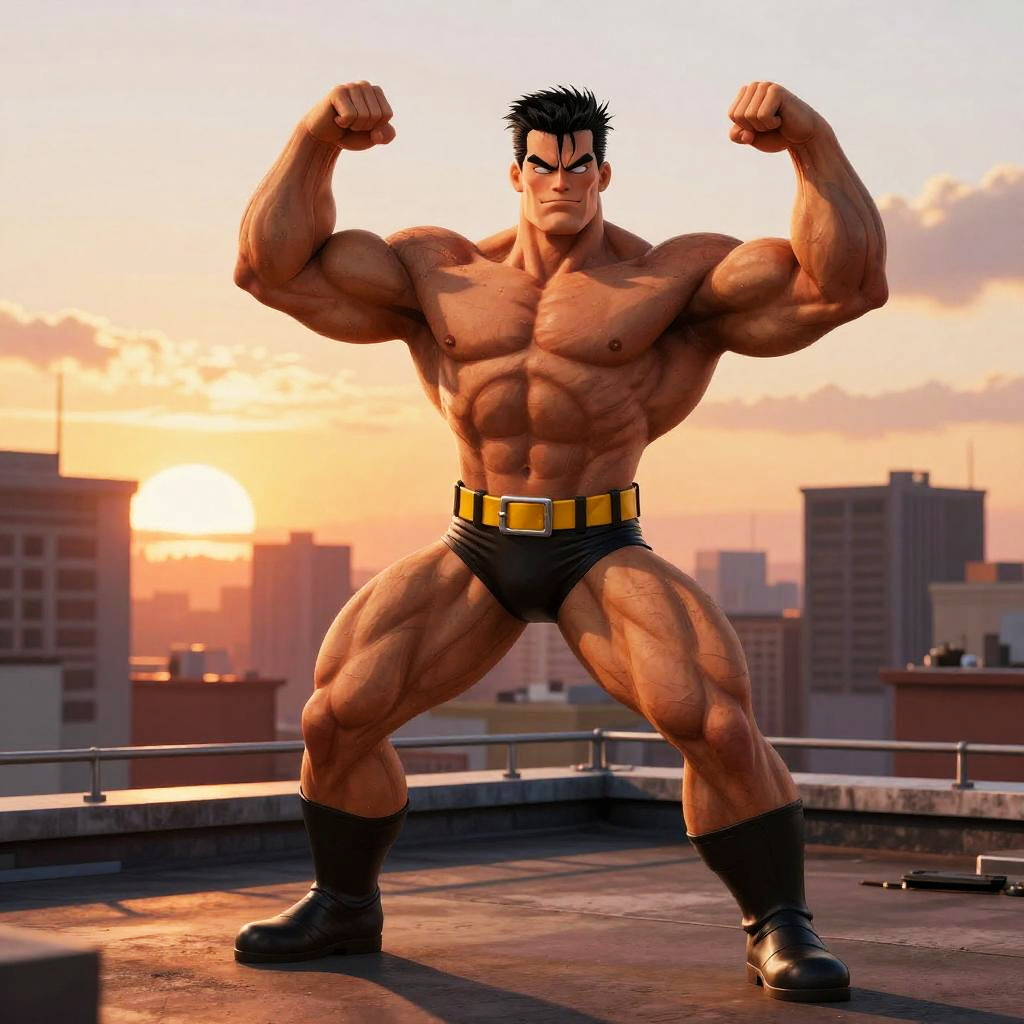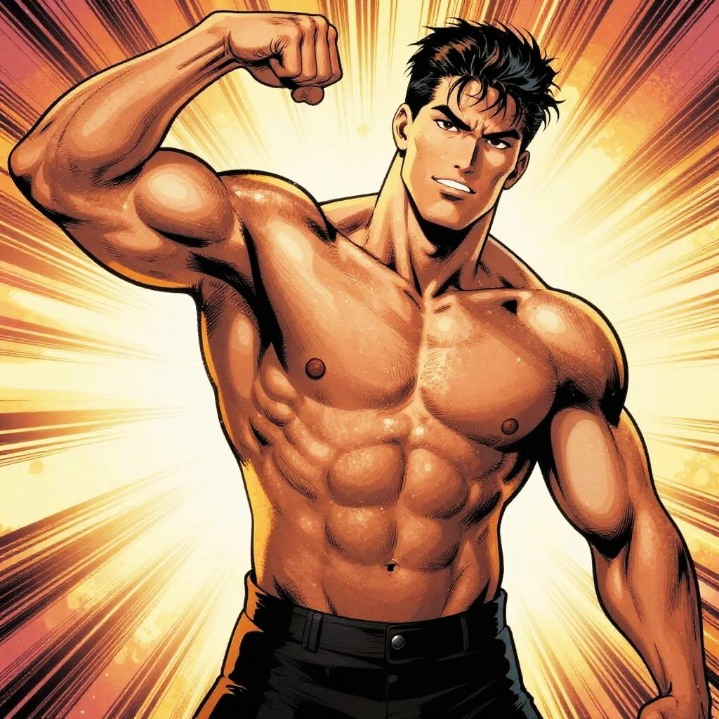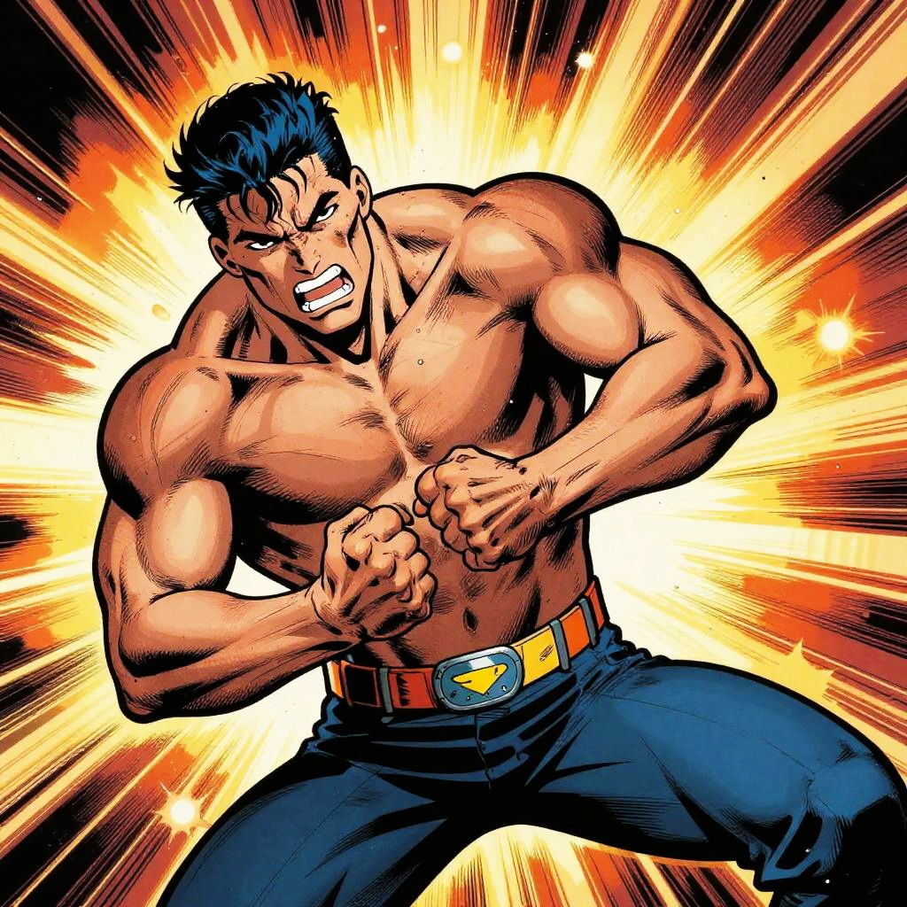 Muscular Comic Hero Action Scene