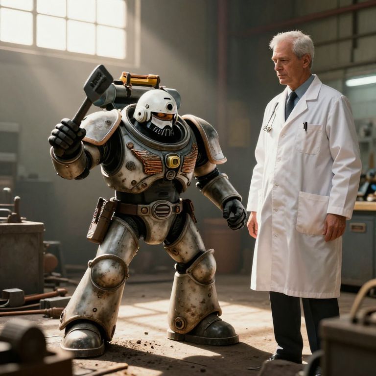 Retro Worker and Doctor in Factory