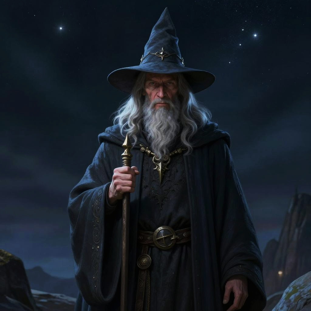 Gandalf Resting by Campfire at Night