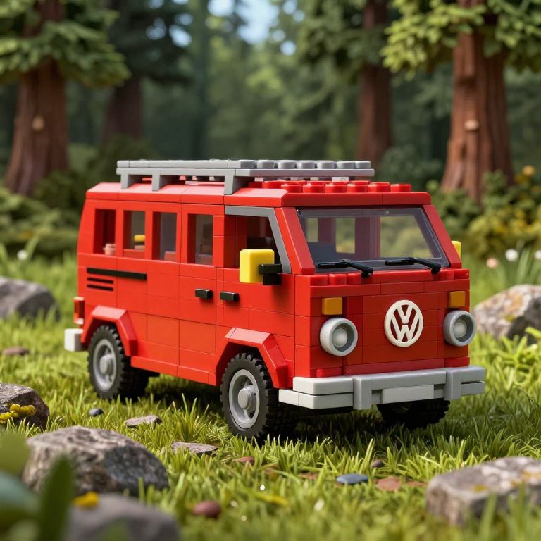 Lego-Style Red Volkswagen Combi Van in Forest