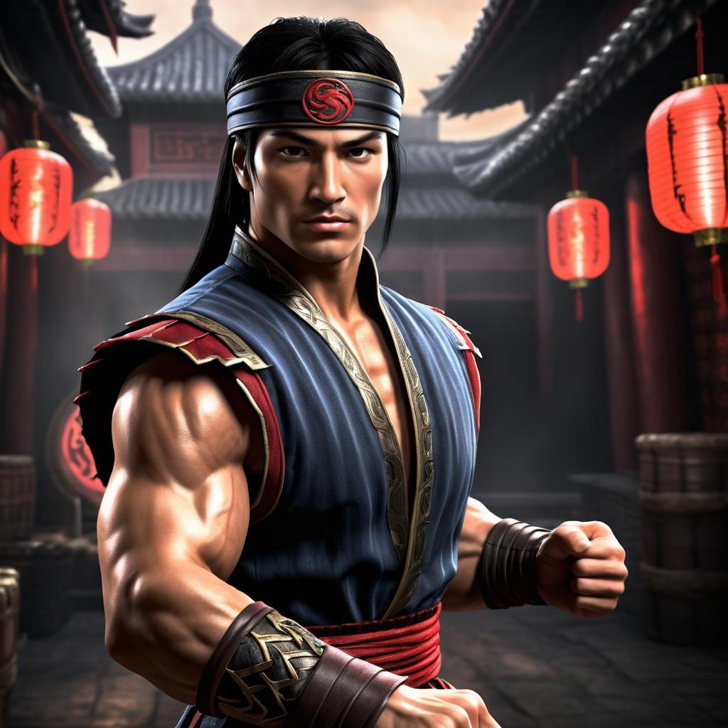 Liu Kang from Mortal Kombat photographed on an iPhone, rendered in a photorealistic style. The image captures the character with lifelike detail, highlighting intricate textures and features of the costume. The realistic lighting and high-resolution quality give the scene an authentic, cinematic feel, making the character appear as if they exist in the real world.