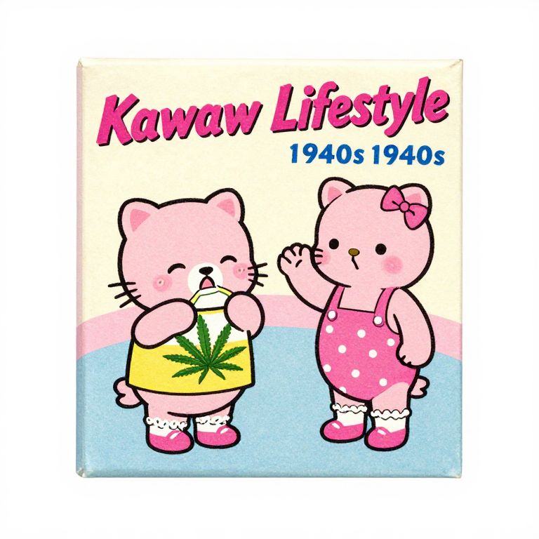 Kawaii Lifestyle 1940s post ad of a marijuana company, subject only, white clear background, pastel coloring, pastel shading,