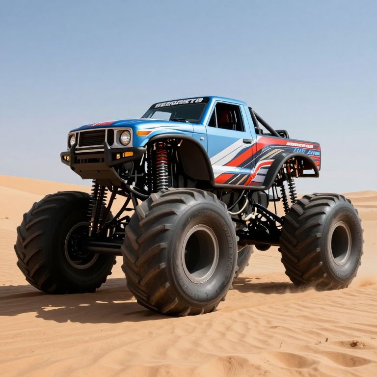 A hyper-detailed monster truck in the desert, by Alberto Seveso.