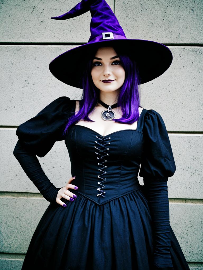 Photo-realistic cosplay photo of person in muffet costume. Full body. Standing. Full length. 1girl, spider girl, monster girl, purple skin, fangs, extra eyes, short hair, black hair, two side up, hair bow, spider, teacup, spider web