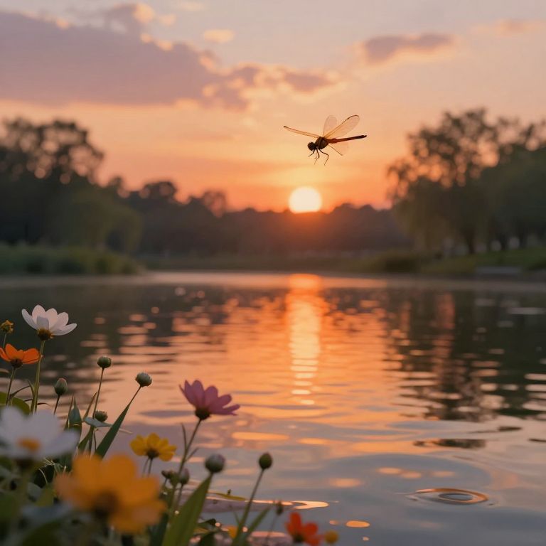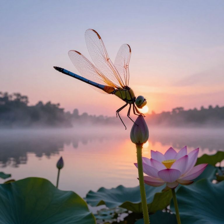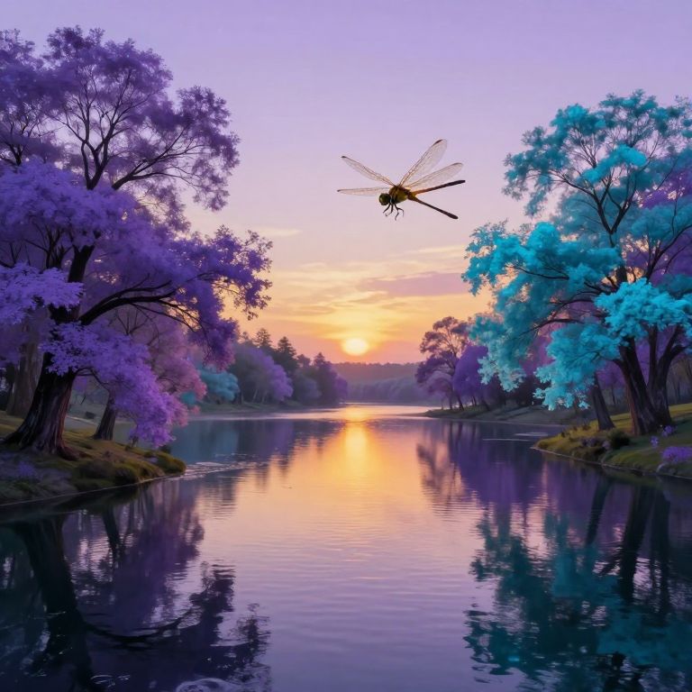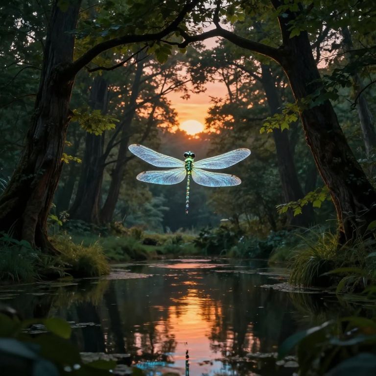 Impressionist Dragonfly Sunset Landscape