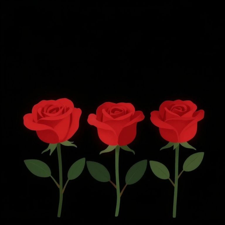 Digital illustration of three vibrant red roses with green leaves on tall stems, set against a solid black background.