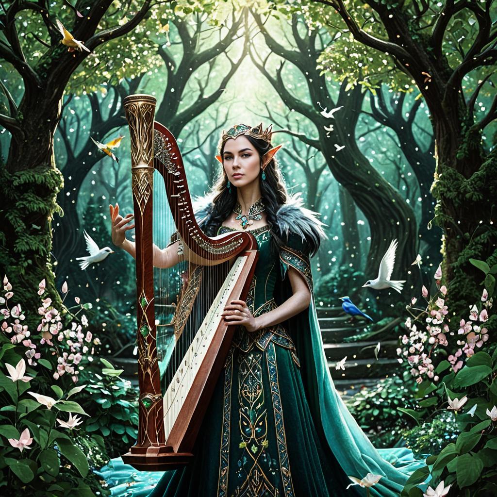 A mystic sea siren holding a pearl of the deep inside sunken coral palaces, surrounded by glittering fish, bioluminescent plants, and gentle waves