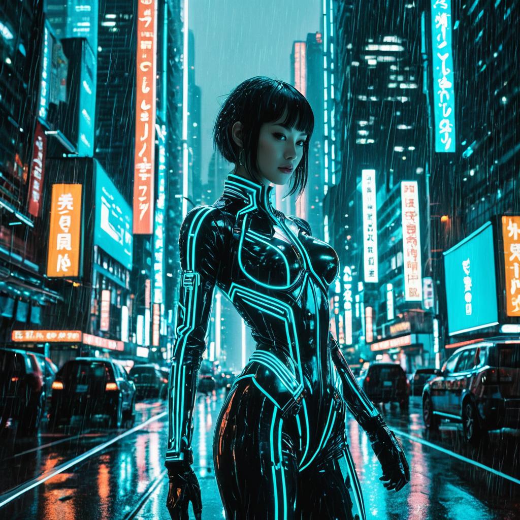 Sensual Neon-Lit Gynoid in Futuristic Landscape