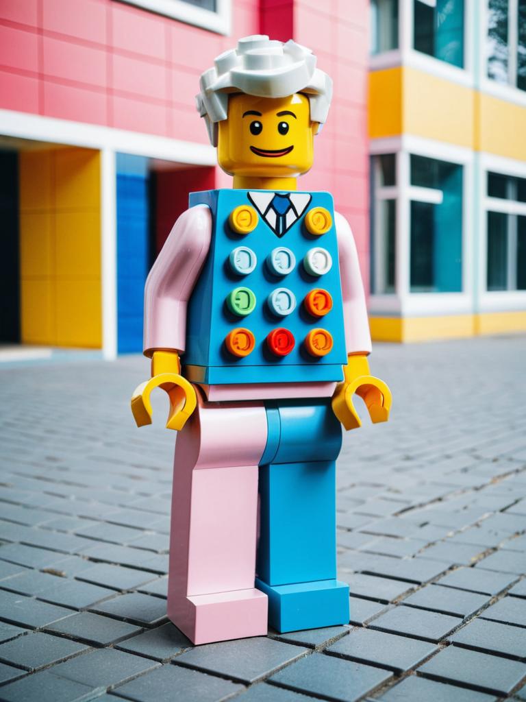 Lego Figure Cosplay in Pastel Urban Setting