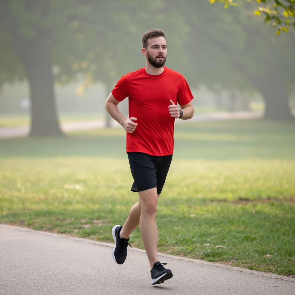 Bearded Man Jogging Coastal Sunrise