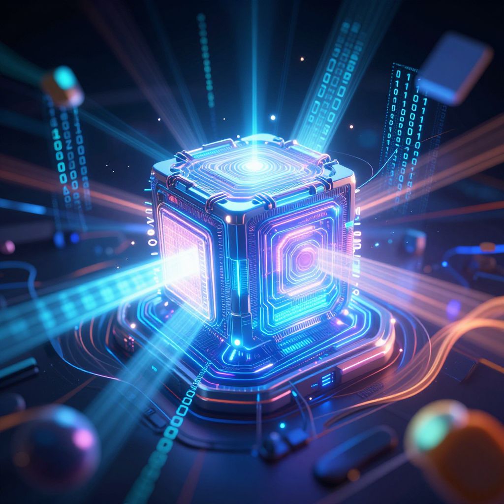 Futuristic AI Core with Light Beams