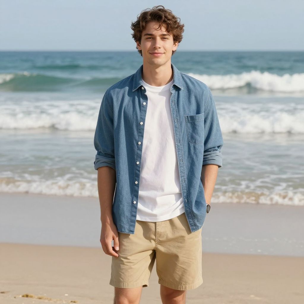 Milfson enjoying a sunny day at the beach, casual summer outfit, soft natural lighting, vibrant colors, relaxed and joyful atmosphere, detailed background with ocean waves