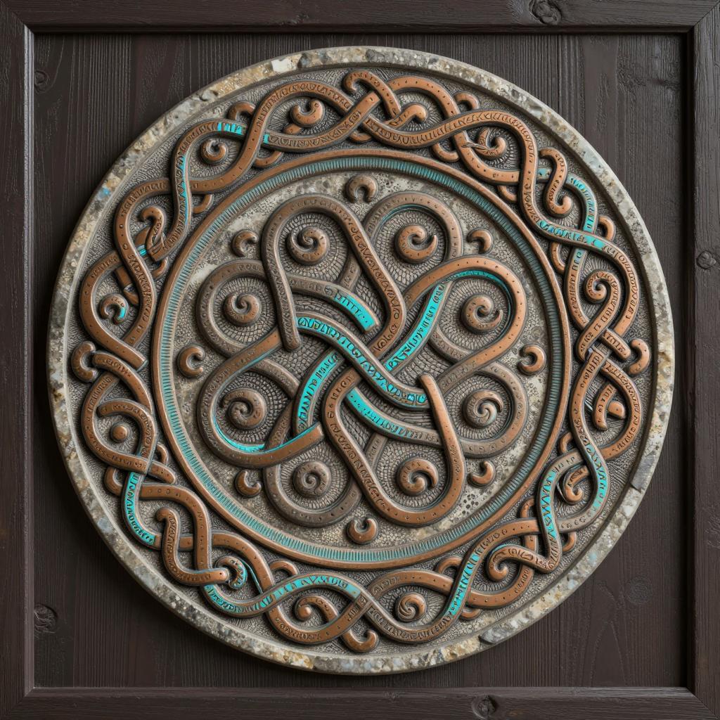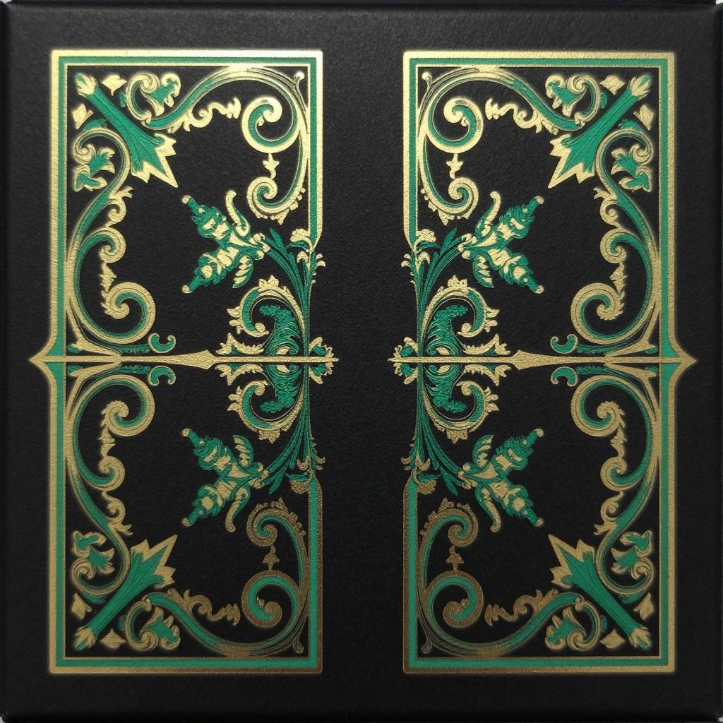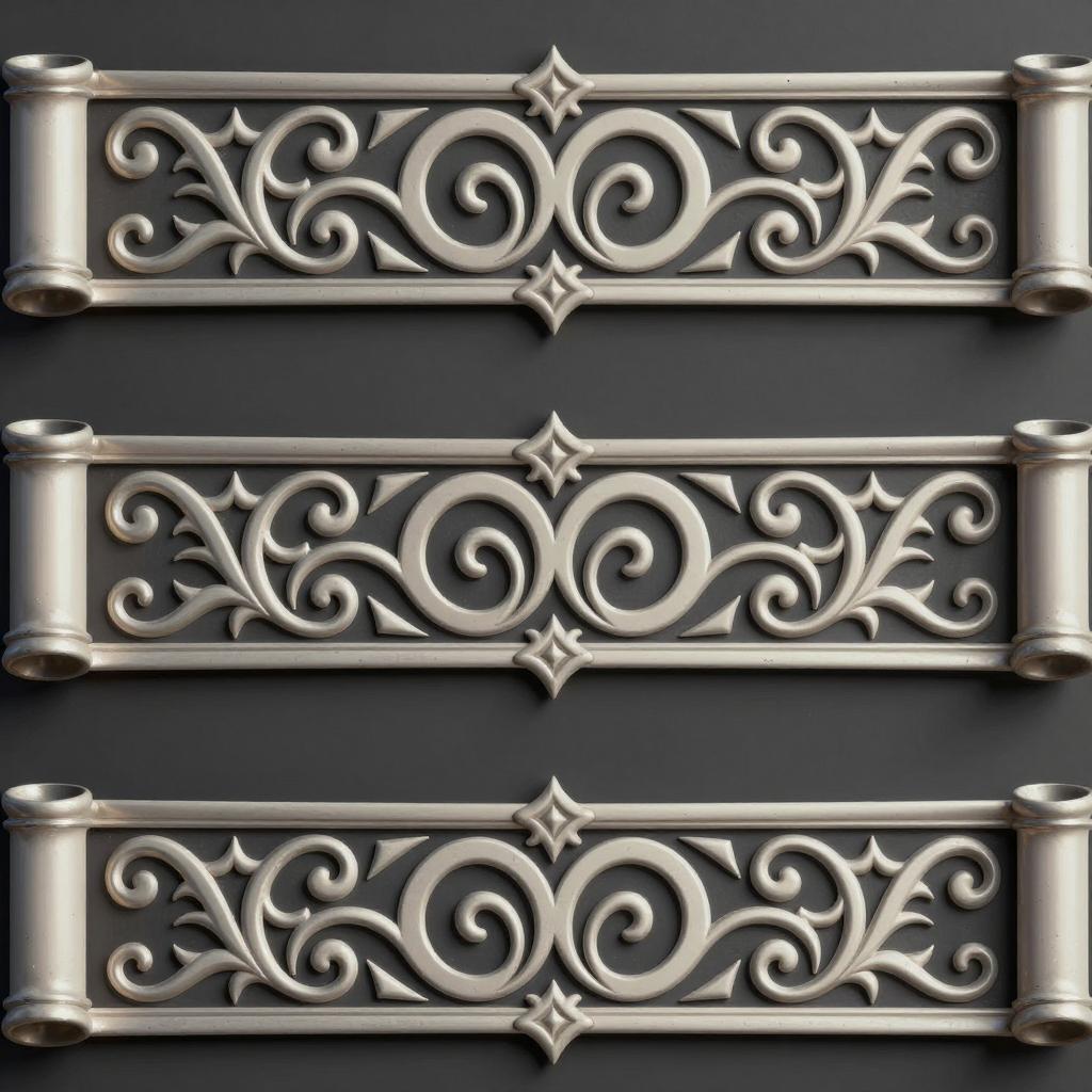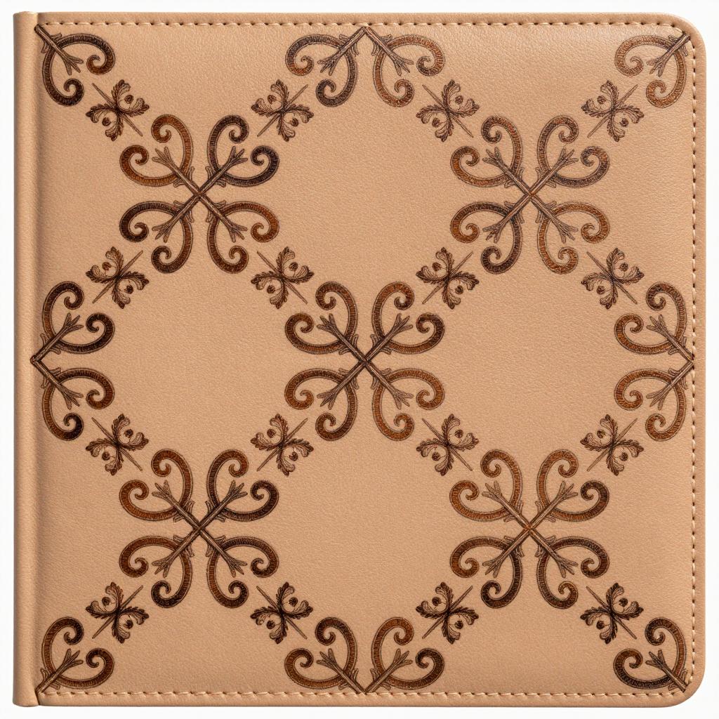Scrollworks pattern featuring Heraldic scrollwork framing shields and crests in rose-gold scrollwork on soft blush pink arranged as symmetrical mirror-image scrolls left and right of center on ornate invitation or certificate background rendered as vector art with clean crisp edges and flat fills, ultra-detailed, sharp ornamental design, high resolution, intricate decorative pattern art