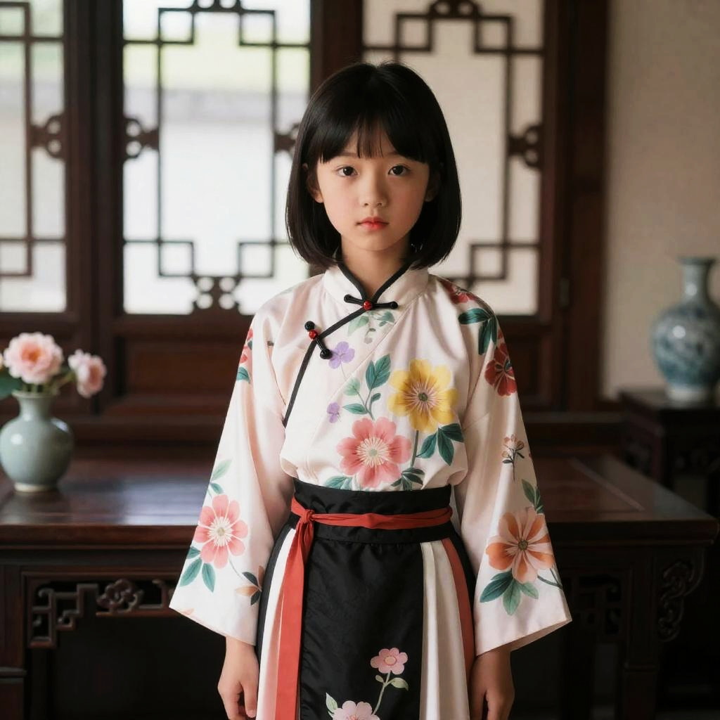 Photorealistic Hanfu Girl in Floral Attire