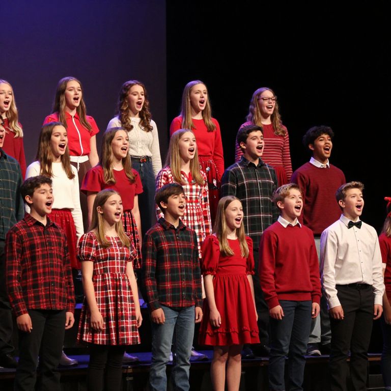 Cast members of the First United Methodist Church's Christmas play gather on stage, singing the final song during Youth Sunday on December 7, with the top row featuring Brooke Rankin, Lauren Trapp, Brandi Barnett, and Kinley Graf; the middle row including Natalie Read, Katie David, Koel Campbell, Evan Guajardo, and Marcos Guajardo; and the bottom row comprising Drew David, Sara Clark, Presley Moos, Ella David, Preslie Miller, Ryan Brymer, and Kael Campbell, as they lead the congregation in a festive performance.