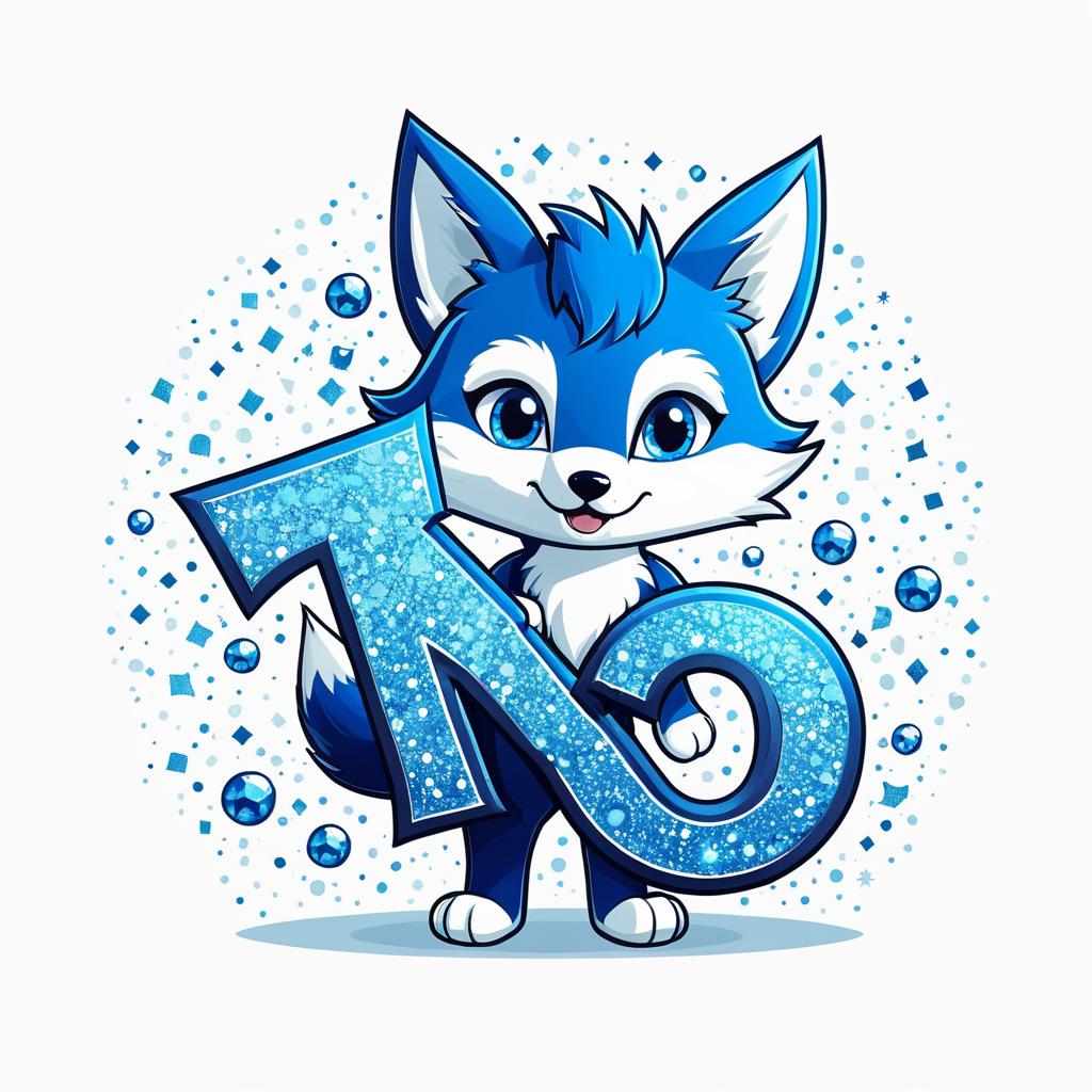 Playful Blue Fox Mascot Holding Sparkling Letters