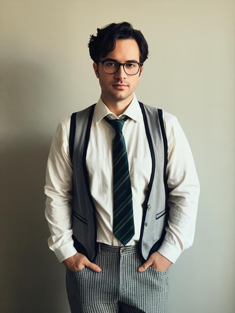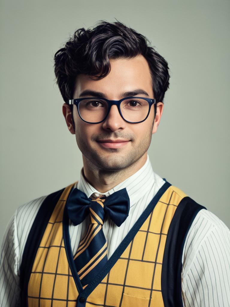 Man in Nerd Costume, cinematic realism, funny parody portrait --sref 1399