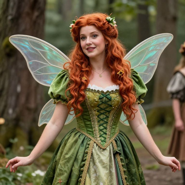 Renaissance Faire Fairy, fairy with red hair and a green dress
