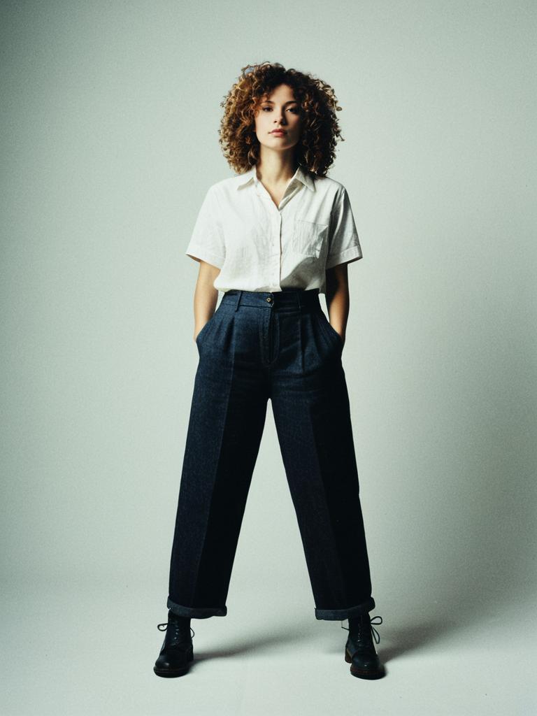 Woman with Curly Hair, full-body editorial portrait with natural styling