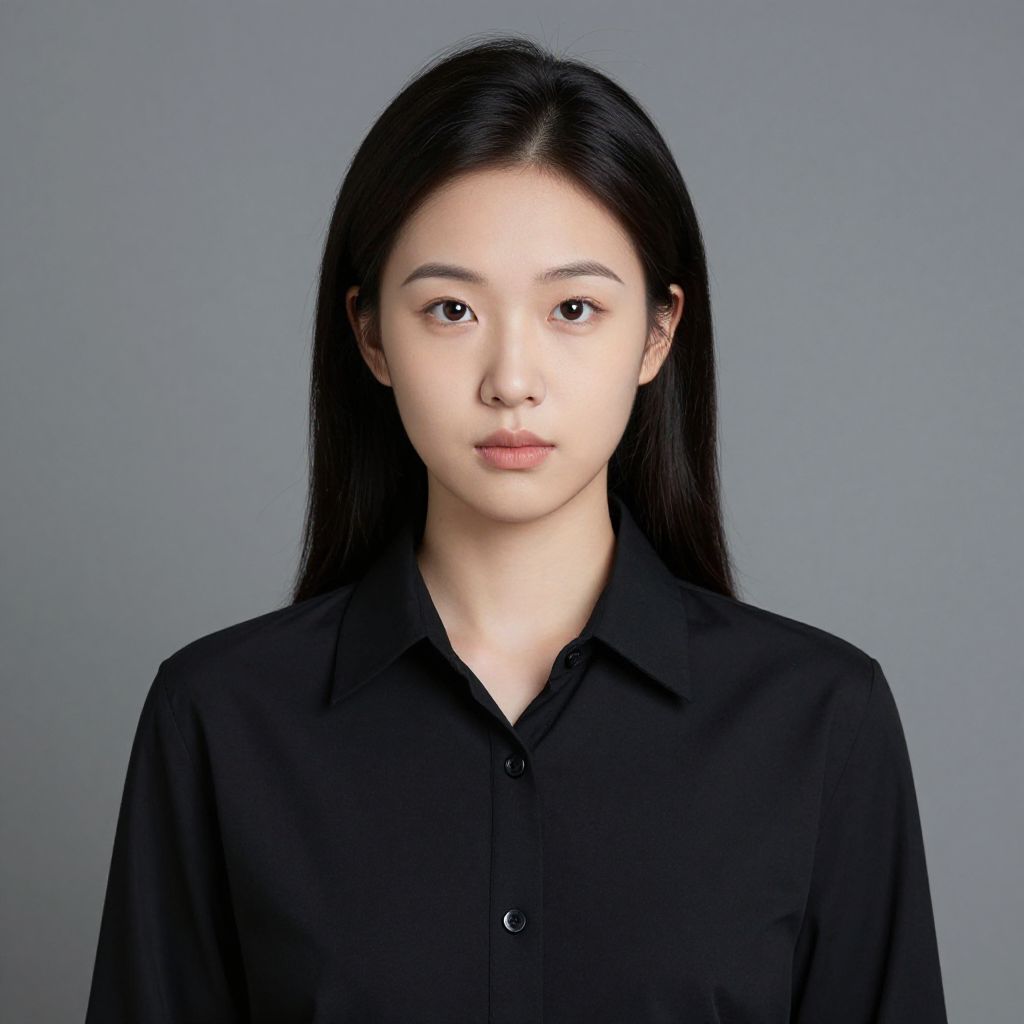 Photograph of an Asian woman with fair skin and long, wavy black hair, smiling softly. She wears a light pink satin robe with wide sleeves, which has a slight sheen. The background is a solid, soft pink gradient, creating a gentle contrast with her robe. Her makeup is minimal, emphasizing her natural beauty, with subtle pink lipstick matching her robe. The lighting is bright and even, highlighting her smooth skin and gentle expression. The overall composition is simple and elegant, focusing on her serene and pleasant demeanor.