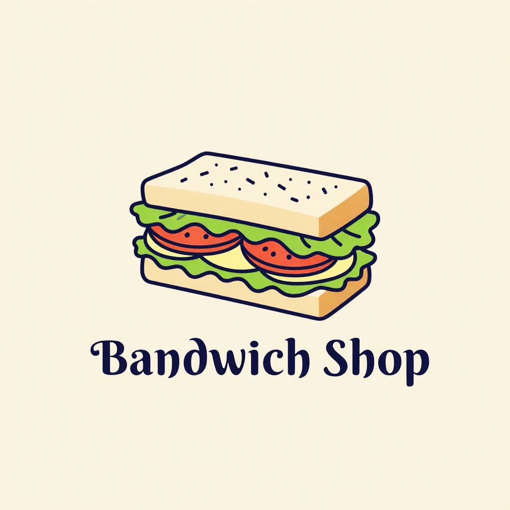 Colorful cartoon illustration of a sandwich with lettuce, tomato, and cheese, labeled "Banwich Shop" in black, playful font.